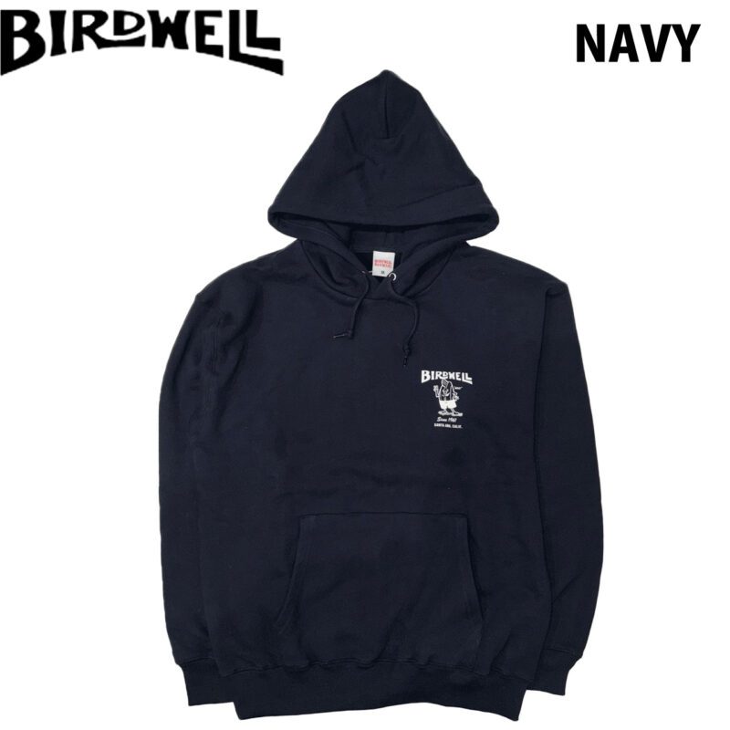 生地はコットン 100% を採用。 着古したような風合いが特徴です。 フロントとバックにバードウェルのデザインが施されています。