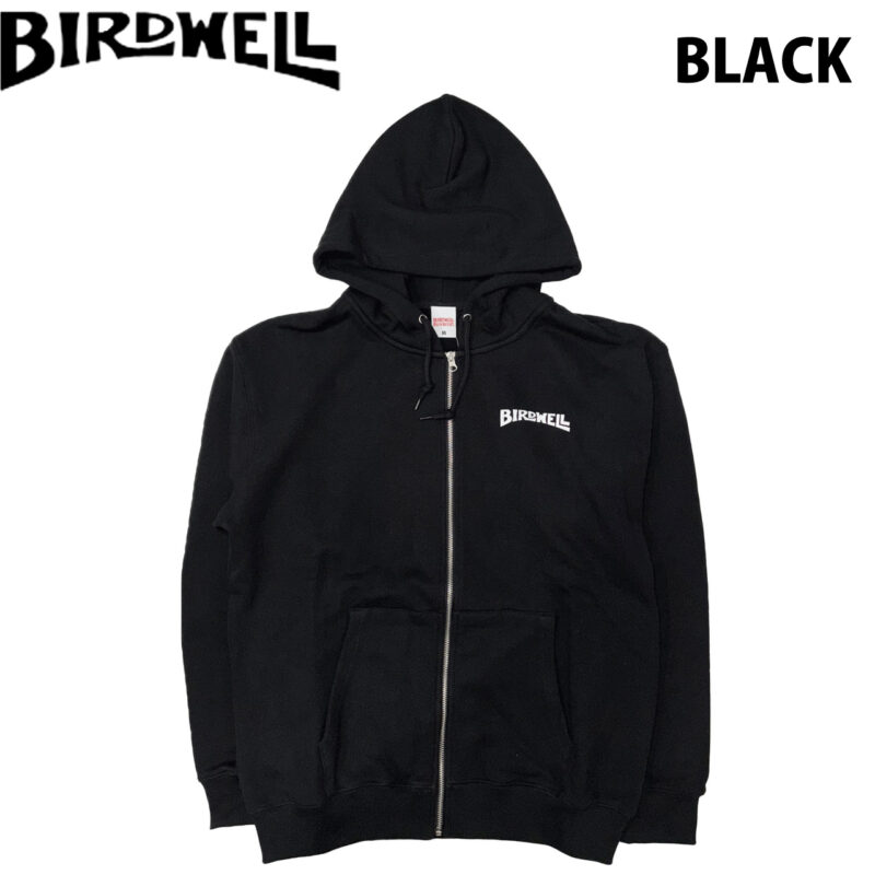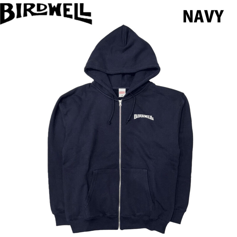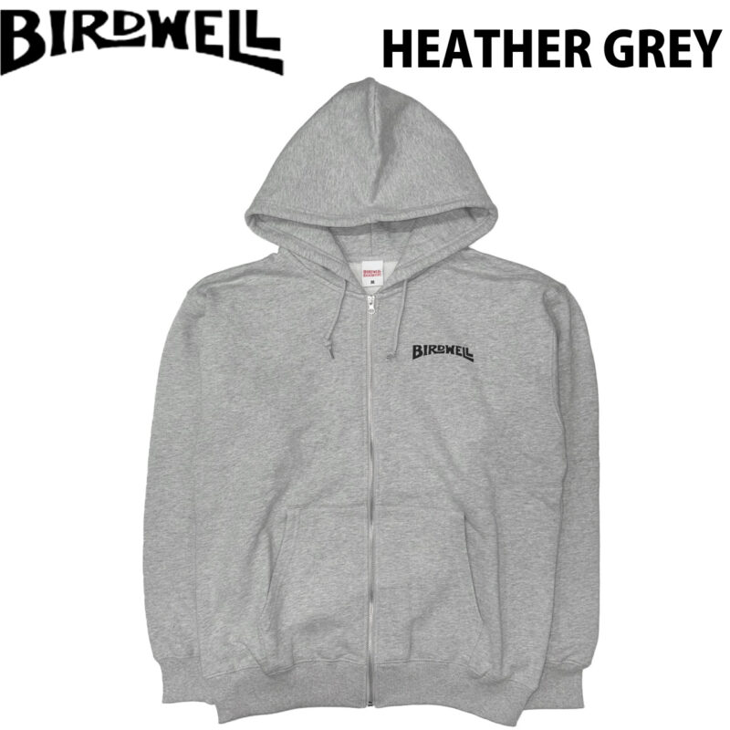 バードウェルのジップフーディ。 生地はコットン 100% を採用。 着古したような風合いが特徴です。 フロントにバードウェルのデザインが施されています。