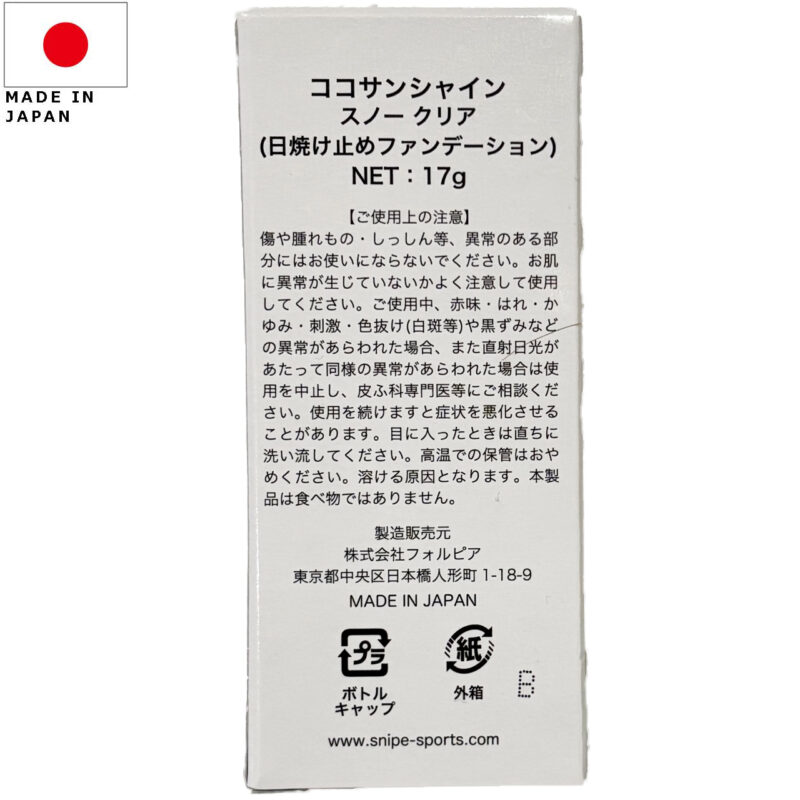 COCOSUNSHINE ココサンシャイン FACE STICK フェイススティック SNOW CLEAR スノークリア SPF30 PA++ coco35pasclr