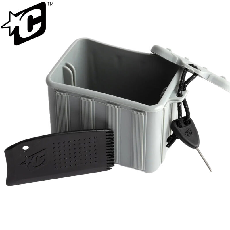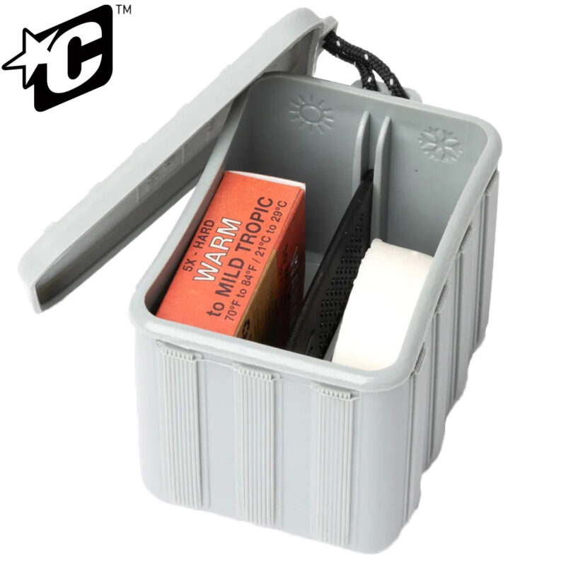 2つのワックスを収納でき、ワックスコームとフィンキー入り。