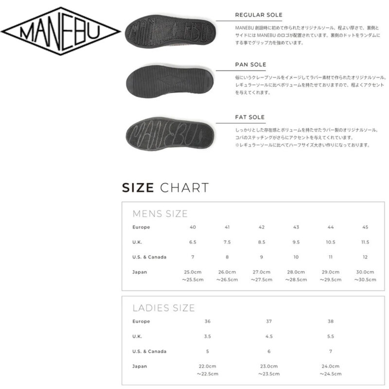 若かりし時にスケートボードカルチャーを体験し、クリエイティブに活躍する30代をターゲットに生まれたシューズブランド。 遊びと仕事の垣根を持たない、楽しむことに貪欲なちょっと不良な大人をイメージしています。 学ぶ×真似る=マネブを意識し、その時々に感じる『今』な要素を惜しげもなく足元に反映させています。