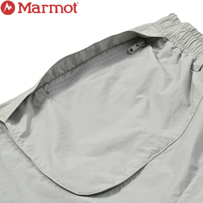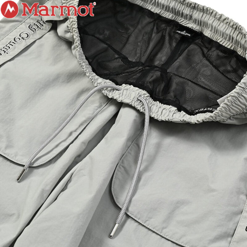 軽量で耐久撥水性柔軟性に優れたPERTEX UNLIMITEDを採用し、裏面には快適なメッシュ付きのジョガーパンツはリラックス感のあるシルエット。サイドに2つ、バックに2つの計4つのポケットを装備し収納力も十分。サイドポケットのフラップには「Marmot Mountain Works」の刺繍入り。裾はゴムシャーリングに加え、サイドジップも配置しシルエットの調整が可能。