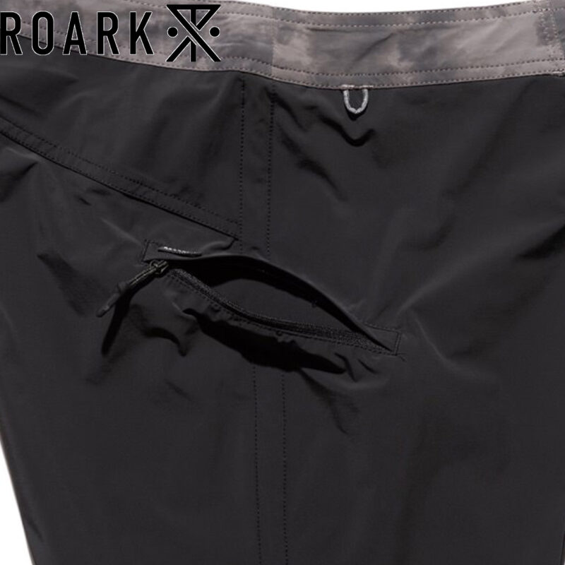 ROARKの人気ボードショーツ「BOATMAN」が3.0にアップデートされ登場。 もも辺りにセーフキャンプアイコンのタグがワンポイントであしらわれたミニマルなデザイン。 右側のスラッシュポケットやフラットフェルドシームなど細部にもこだわった仕様となっています。 また、4wayストレッチの伸縮性、速乾性を併せ持つコーデュラナイロン生地を採用。 D W R(耐久性撥水)コーティングにより撥水性を高めており、パッカブル仕様なので携帯性も抜群です。 18インチのアウトシームが美しいシルエットを保ちます。 4つ穴に通されたドローコードでウエストのフィット感を調節可能です。