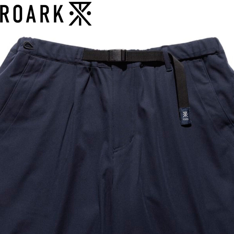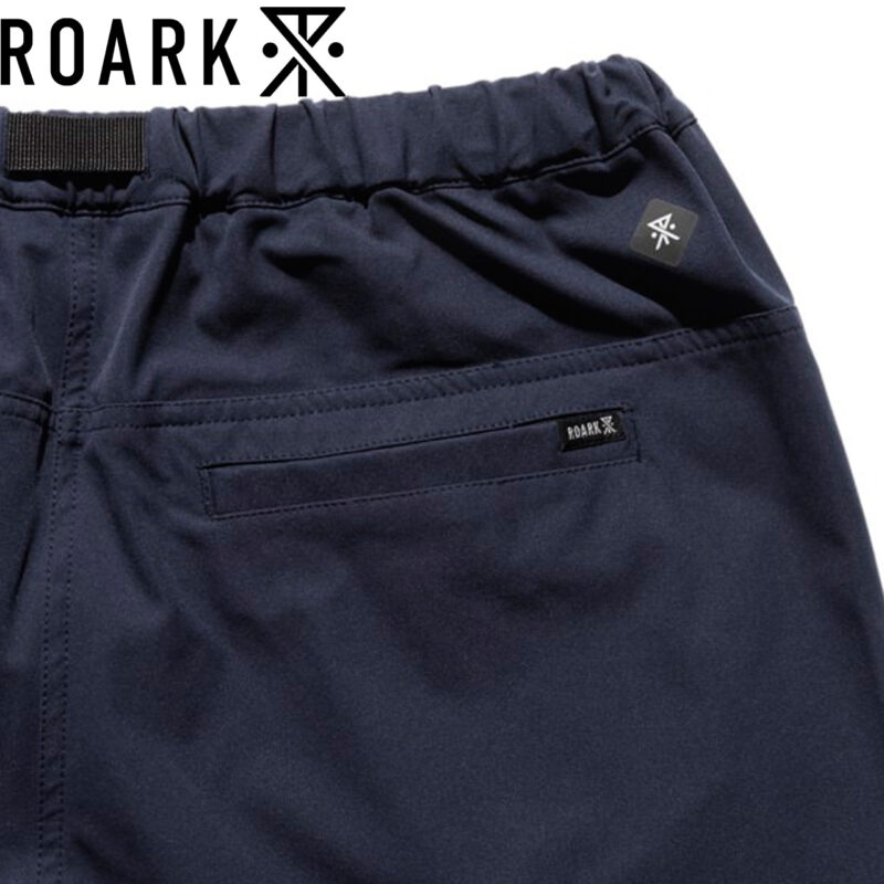 ウェービングベルトにはROARKのブランドアイコン、バックポケットにはブランドロゴがあしらわれています。