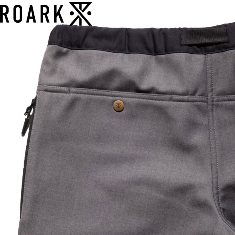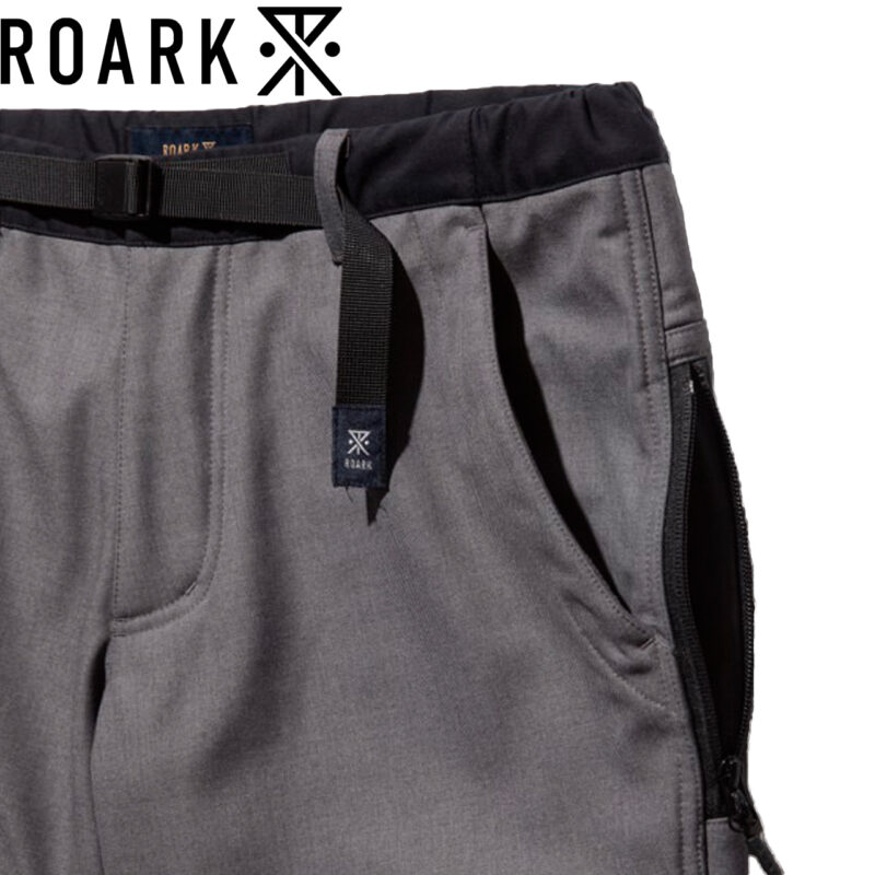 ウェービングベルトにはROARKのブランドアイコン、バックポケットにはブランドロゴがあしらわれています。
