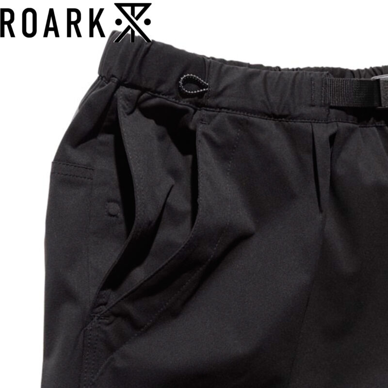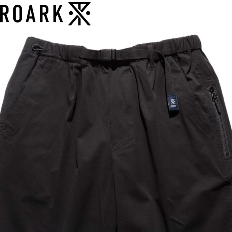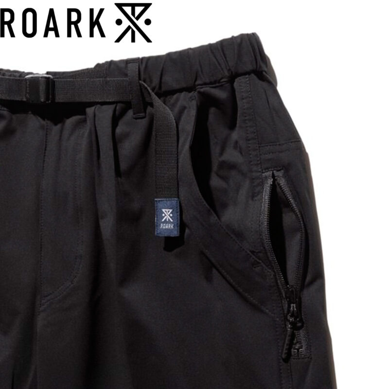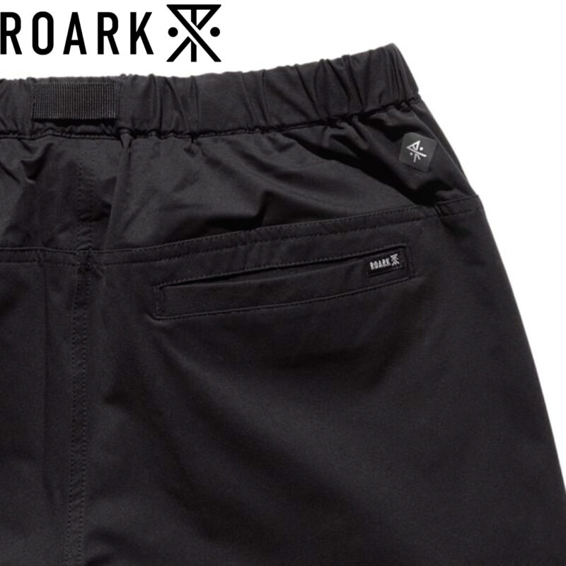 ウェービングベルトにはROARKのブランドアイコン、バックポケットにはブランドロゴがあしらわれています。