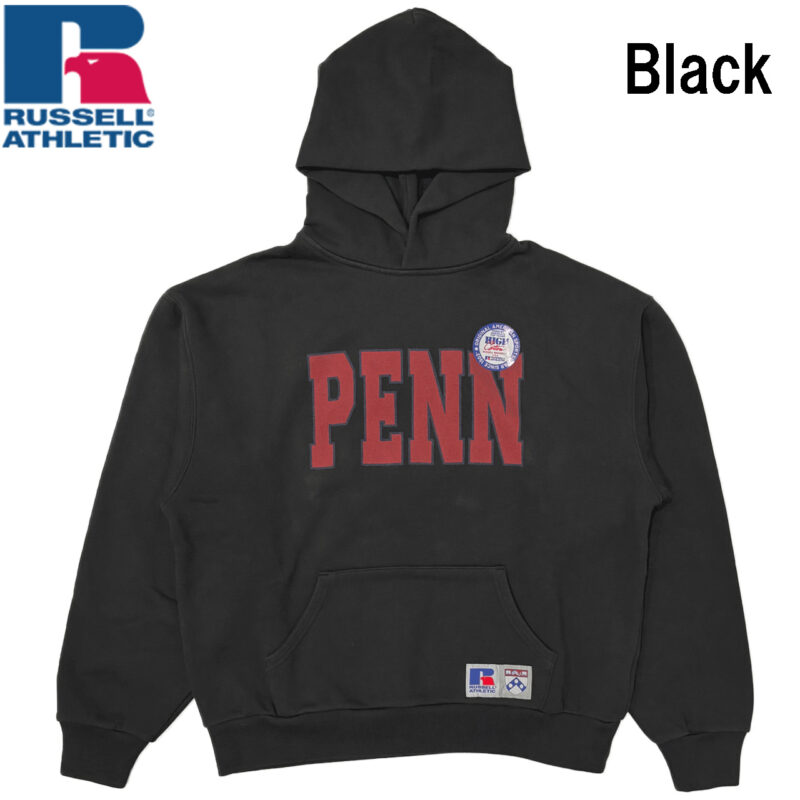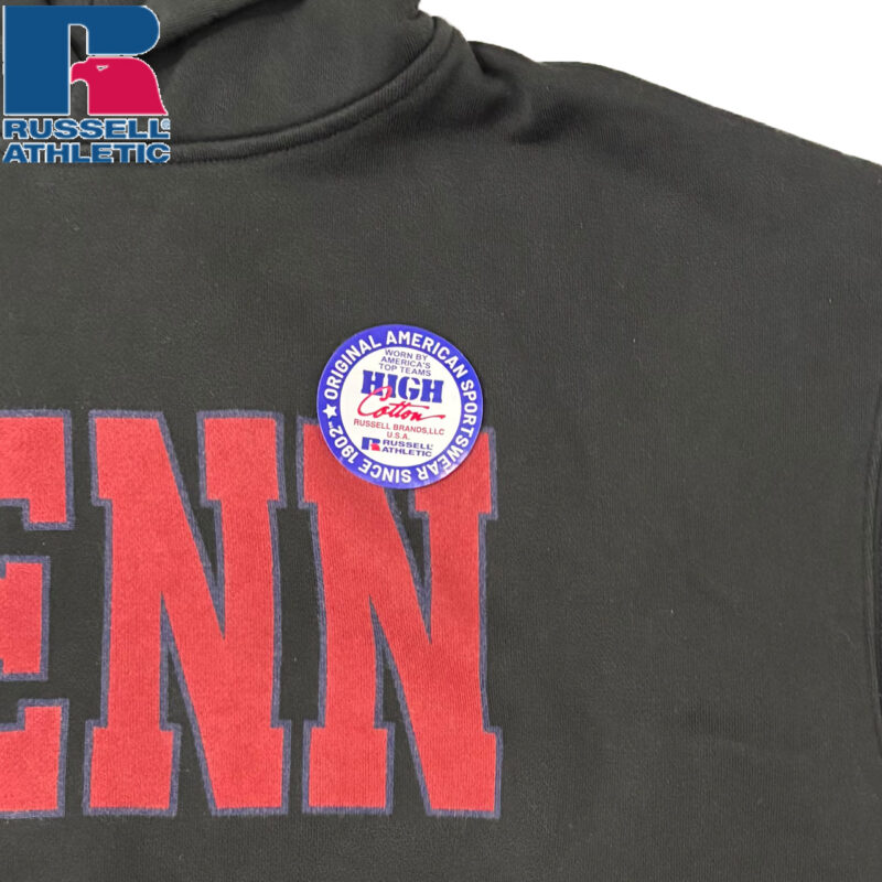 RUSSELL ATHLETICのヴィンテージアーカイブを基盤にし構想したカレッジシリーズ。 1980年代から1990年代にかけ、多くのカレッジのスポーツウェアを手がけ残されたアーカイブから「 The University of Pennsylvania(ペンシルベニア大学)」のウェアをセレクション。 80%以上のコットン混率をレギュレーションとして、1990年に開発された”HIGH COTTON™” ポリエステルをブレンドした滑らかな風合いが際立ち、ハリとコシのある特有のタッチ感が特徴。 1989年に開発されたPRO COTTON™に続き、通年を通して手に取りたくなるRUSSELLを代表する生地へと仕上がりました。 丸みを帯びたボックスシルエットと、アーカイブを元にしたカンガルーポケットが特徴的です。