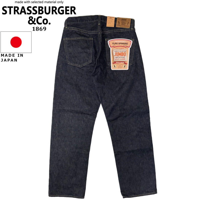 1970年代に日本国内で初めてデニム専用の糸として開発された一般精紡管糸の単量の5倍以上を巻くことが可能な『ジャンボ精紡機』から生み出された『JUMBO』のデニムを使ったジーンズ。最新式の紡績機では表現することが困難な自然なムラ糸もこの『ジャンボ精紡機』ならば編み出すことが可能です。