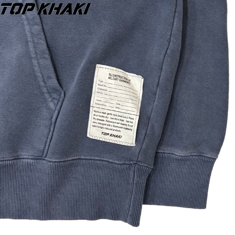 コットン素材のボディに顔料で製品染め、クラックプリント加工を施すことで、ヴィンテージの洗いざらし感と色合いを感じるような雰囲気に仕上げています。