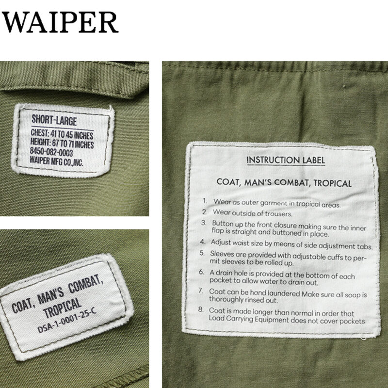 コットンポプリンを採用した軽い着心地のフィールドジャケットは、後年のBDUジャケットに通じる亜熱帯地方での着用を想定した軽量なジャケットです。現代のミリタリーファッションとしても非常に人気の高い理由として、高温多湿の中での着用を想定してるため日本の気候にもマッチし、着用期間が広いのも特徴です。