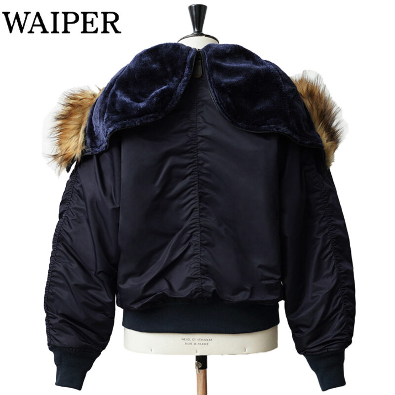 実物のN-2Bは丈が極めて短く、肩周りが大きく膨らむため、現代のカジュアルスタイルに落とし込むにはやや極端なシルエットでした。