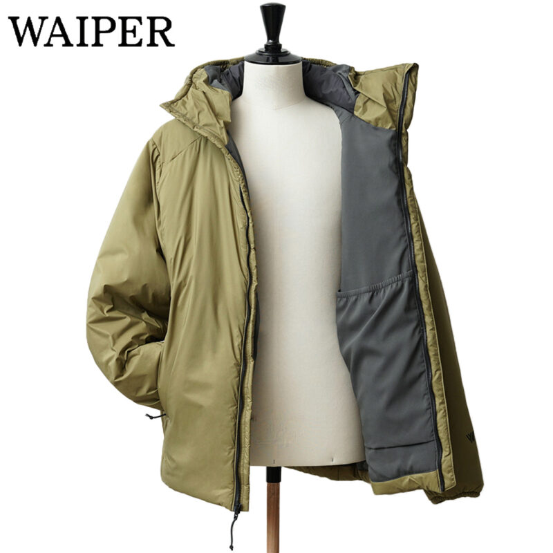 本来は“山岳ミッションでの停滞時に体温を逃さない”ことを目的に設計されていたため、中綿量はしっかりありながら、極薄の撥水性に優れたシェルは重量は驚くほど軽量です。大型のフードはヘルメットやゴーグルをつけた上からでも装着が可能です。